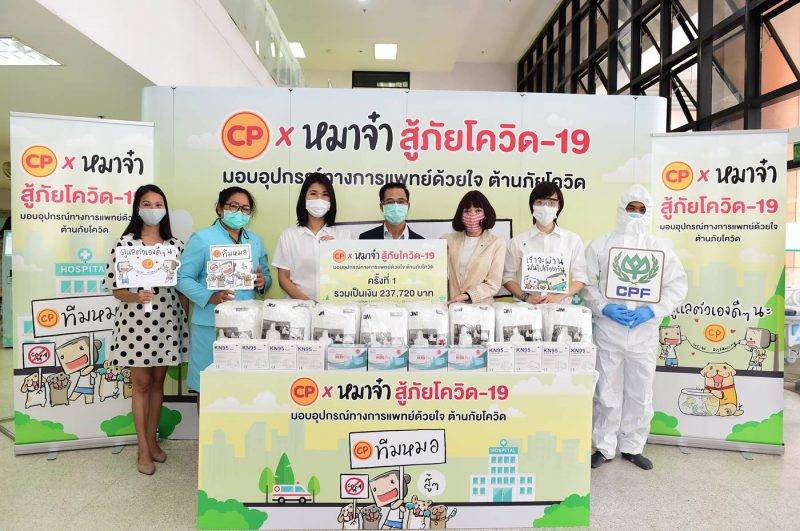 “วันนี้เราได้นำเงินจากน้ำใจของทุกท่านที่โหลดสติ๊กเกอร์“ CP x หมาจ๋า สู้โควิด-19” ครั้งที่ 1 มามอบให้คุณหมอตามความตั้งใจ นับเป็นอีกความภูมิใจของซีพีเอฟที่ได้ช่วยเหลือบุคลากรทางการแพทย์อย่างต่อเนื่อง จึงอยากขอเชิญชวนทุกท่านร่วมทำบุญสมทบทุนซื้ออุปกรณ์ทางการแพทย์ด้วยกัน ซึ่งขณะนี้ยังเหลือเวลาให้ทุกท่านช่วยกันโหลดไปจนถึงสิ้นเดือนพฤษภาคมนี้” นางสาวอนรรฆวีกล่าว.