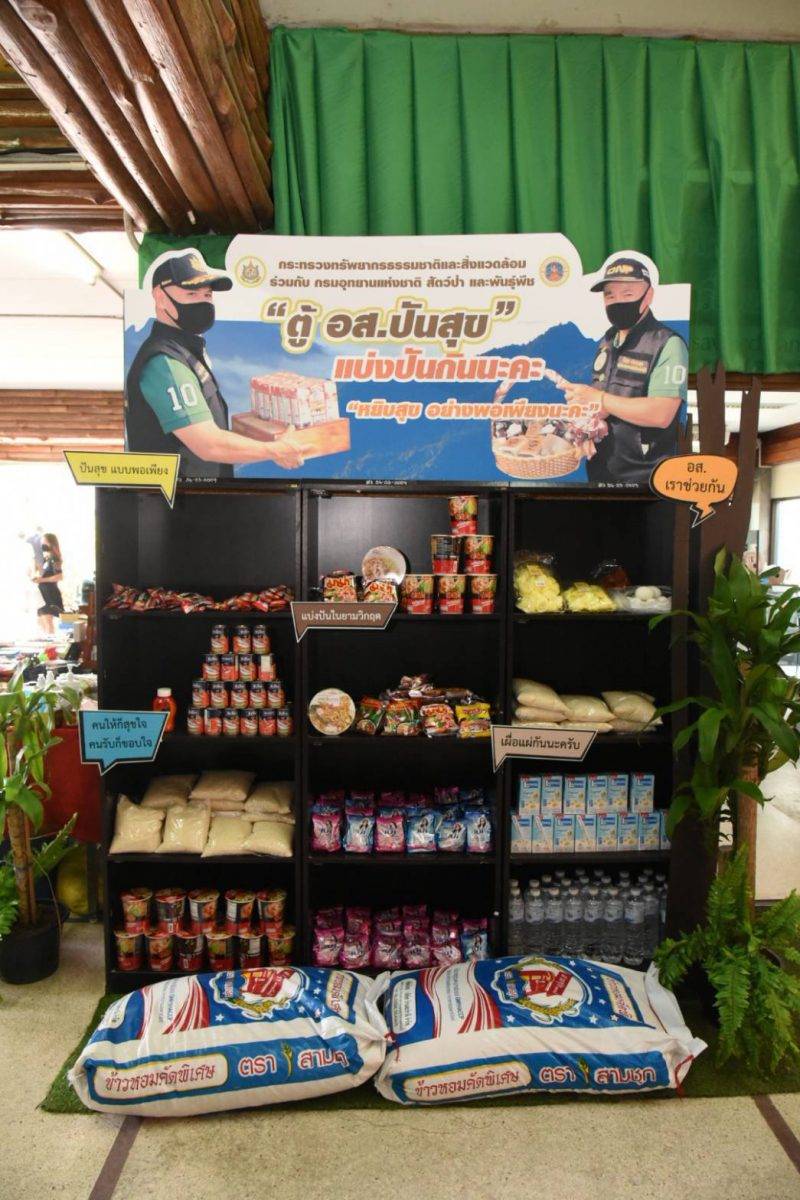 กรมอุทยานแห่งชาติ สัตว์ป่า และพันธุ์พืช (อส.) จึงได้จัดทำ “ตู้ อส. ปันสุข” ขึ้น เพื่อร่วมกันแบ่งปันความสุขแก่พี่น้องประชาชนรวมถึงเจ้าหน้าที่ของอส. ที่ได้รับความเดือดร้อนจากสถานการณ์ดังกล่าว โดยติดตั้ง “ตู้ อส. ปันสุข” ภายในกรมอุทยานแห่งชาติ สัตว์ป่า และพันธุ์พืช บริเวนด้านหน้าร้านค้าสวัสดิการฯ (หน้าห้องอาหารวนาลี) เขต บางเขน กทม. ทั้งนี้ ภายในตู้จะมีสิ่งของอุปโภคบริโภคที่จำเป็นในชีวิตประจำวัน เช่น สบู่ ยาสีฟัน น้ำดื่ม ข้าวสาร อาหารแห้ง ปลากระป๋อง บะหมี่กึ่งสำเร็จรูป เป็นต้น ซึ่งสิ่งของเหล่านี้ มีผู้นำมาบริจาคจากจากหลายภาคส่วน ทั้งข้าราชการกรมอุทยานแห่งชาติฯ ประชาชนจิตอาสาได้นำมาใส่ไว้ในตู้ ซึ่งกรมอุทยานแห่งชาติฯขอเชิญชวนผู้ที่ต้องการแบ่งปันอาหารหรือสิ่งของที่จำเป็นต้องใช้ในชีวิตประจำวัน มาร่วมเติมของใน ตู้ “อส. ปันสุข” ได้ตลอด