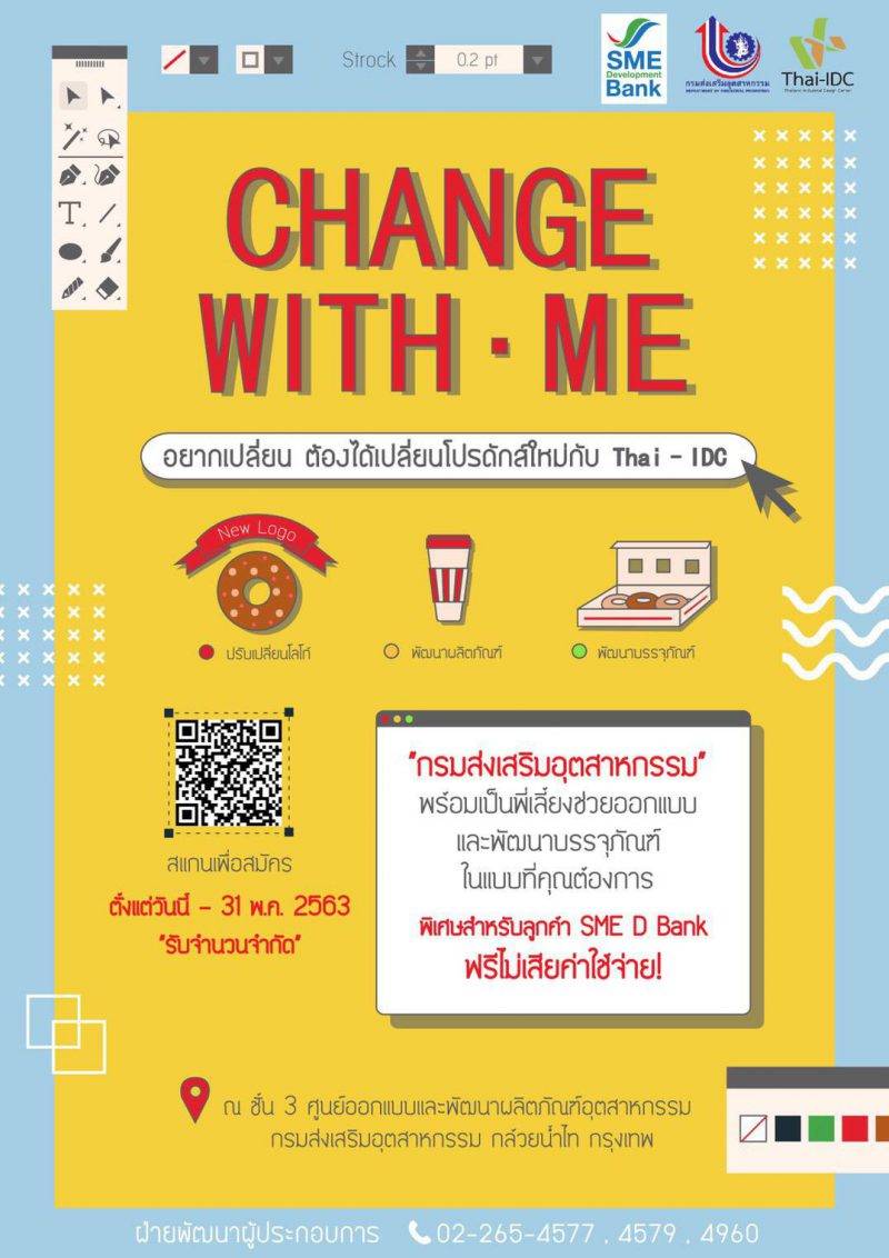 ธนาคารพัฒนาวิสาหกิจขนาดกลางและขนาดย่อมแห่งประเทศไทย (ธพว.) หรือ SME D Bank ร่วมกับ ศูนย์ออกแบบและพัฒนาผลิตภัณฑ์อุตสาหกรรม (Thai-IDC) ภายใต้กรมส่งเสริมอุตสาหกรรม กระทรวงอุตสาหกรรม จัดกิจกรรม “Change with me” อยากเปลี่ยน ต้องได้เปลี่ยนผลิตภัณฑ์ใหม่กับ Thai-IDC เปิดโอกาสสุดพิเศษ