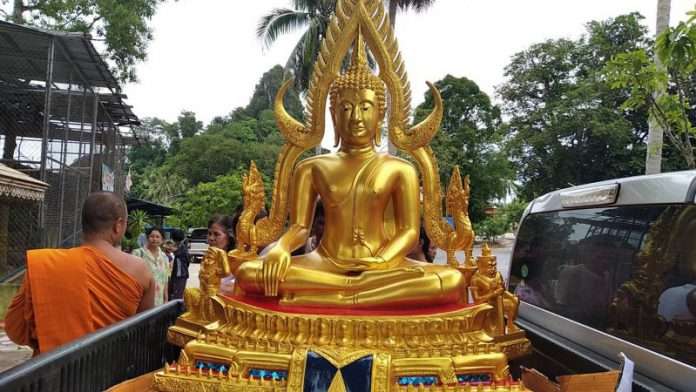 ล่าสุด ผู้สื่อข่าวรายงานว่า มีนายจรัส เจยาคม อายุ 31 ปี อยู่บ้านเลขที่ 7 หมู่ 6 ต.เขาพระทอง อ.ชะอวด จ.นครศรีธรรมราช อาชีพเกษตรกร พร้อมกับครอบครัว นำพระพุทธชินราชทองคำ หน้าตัก 29 นิ้ว น้ำหนัก 400 กิโลกรัม ราคา 120,000 บาท บรรทุกท้ายรถกระบะยี่ห้ออีซูซุ ดีแม็ก สีบรอน์เงิน ทะเบียน กด – 7256 พัทลุง ถวายให้พระมหาอารยะนัน อนันโท เจ้าอาวาสวัดเขาพระทอง เพื่อให้ประชาชนได้กราบไหว้บูชา เพื่อความสิริมงคล หลังประสบความสำเร็จนหน้าที่การงาน จากนั้นคณะสงฆ์และคณะพุทธบริษัท วัดเขาพระทอง ร่วมกันประกอบพิธีสวดชะยันโต บริเวณหน้าหลวงพ่อองค์ใหญ่ ก่อนจุดประทัด 1 หมื่นนัด เพื่อความสิริมงคล จากนั้นชาวบ้านช่วยกันเข็นรถกระบะคันดังกล่าวที่ท้ายบรรทุกพระพุทธชินราช ไปยังบริเวณลานบุญลานธรรมสวนของพ่อดงพญามุจลินทร์ เพื่อประดิษฐานพระพุทธชินราชทองคำ ให้ประชาชนได้กราบไหว้บูชาต่อไป