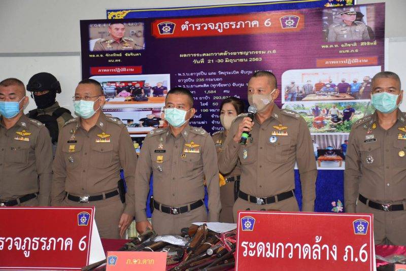 เมื่อเวลา 09.30 น. วันที่ 2 พล.ต.ท.อภิชาติ ศิริสิทธิ์ ผู้บัญชาการตำรวจภูธรภาค 6 พร้อมกับ ผบก.ภ.จ.ในสังกัด นำของกลางอาวุธปืน ยาเสพติด และรถจักรยานยนต์ที่ใช้ในการกระทำผิด มาแถลงข่าวผลการระดมกวาดล้างอาชญากรรม และการระดมกวาดล้างการแข่งรถในทาง ระหว่างวันที่ 20 -30 มิ.ย.63 ต่อสื่อมวลชน ที่สำนักงานตำรวจภูธรภาค 6 ต.มะตูม อ.พรหมพิราม จ.พิษณุโลก