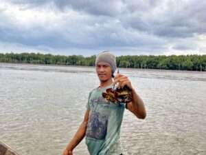 “เมื่อก่อนพื้นที่แถวนี้ เรียกว่า ดอนหอยแครง แต่ในช่วงหลายสิบปีมานี้ หอยแครงหาได้น้อยมาก เรือดุน เรืออวน ต้องออกจากฝั่งไปไกลๆ เพื่อจับกุ้ง หอย ปู ปลา ถึงจะจับได้ แต่หลังปี 2561 เมื่อป่าชายเลนได้รับการฟื้นฟู มีต้นไม้เพิ่มขึ้น ป่ากลับมาสมบูรณ์ เห็นได้ชัดเจนว่าสัตว์หลายชนิดที่เคยหายไปก็กลับมา เช่น หอยแครง ปลากระบอก แมงดาจาน ทำให้สามารถจับสัตว์น้ำได้ใกล้ๆแนวป่าใหม่ โดยไม่ต้องออกไปไกลเหมือนที่ผ่านมา”