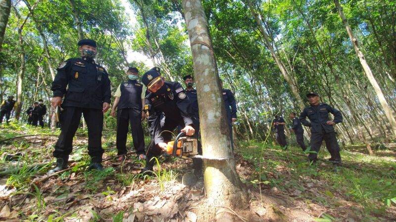 เมื่อวันที่ 14 กรกฎาคม 2563 ช่วงเวลา 10.00 -17.00 น. นายจีระ ทรงพุฒิ ผู้อำนวยการสำนักจัดการทรัพยากรป่าไม้ที่ 3 สาขาแพร่ พร้อมนายมานะ จิตฤทธิ์ ผอ.ศูนย์ป่าไม้จังหวัดน่าน สนธิกำลังชุดปฎิบัติการพิเศษป่าไม้ สจป.ที่ 3 สาขาแพร่ , นายพิษณุพันธ์ วงค์ขันธ์ หน.ชุดปฏิบัติการพิเศษป่าไม้ สจป.ที่ 3 สาขาแพร่ ชุดปฎิบัติการพิเศษป่าไม้น่าน , นายภูริทัศน์ แมดเมือง เจ้าพนักงานป่าไม้ชำนาญงานหัวหน้าหน่วยป้องกันรักษาป่า ที่ นน.4 (ท่าวังผา) จังหวัดน่าน / นายณัฐธนน คนสูง เจ้าพนักงานป่าไม้ชำนาญงาน ประกอบด้วย / หน่วยป้องกันรักษาป่าที่ นน.2 (ทุ่งช้าง) / หน่วยป้องกันรักษาป้าที่ นน.3(สองแคว) / หน่วยป้องกันรักษาป่าที่ นน. /(เชียงกลาง) / หน่วยป้องกันรักษาป่าที่ นน.6 (ปัว) / หน่วยป้องกันรักษาป่าที่ นน.10 (ภูเพียง) / หน่วยป้องกันรักษาป่าที่ นน.11 (เมืองน่าน) / ชุดปฏิบัติการพิเศษศูนย์ป้าไม้น่าน / นายอานนท์ พวงเพชร เจ้าหน้าที่ฝ่ายปกครองอำเภอท่าวังผา จ.น่าน / ร.ต.ท.ธนกร ลำน้อย เจ้าหน้าที่ตำรวจ สภ.ตาลชุม / เจ้าหน้าที่ชุด ศปทส. จ.น่าน / หน่วยป้องกันฯ ศปม.น่าน และหน่วยที่เกี่ยวข้องตัดฟันต้นยางพาราและรื้อถอนสิ่งปลูกสร้าง