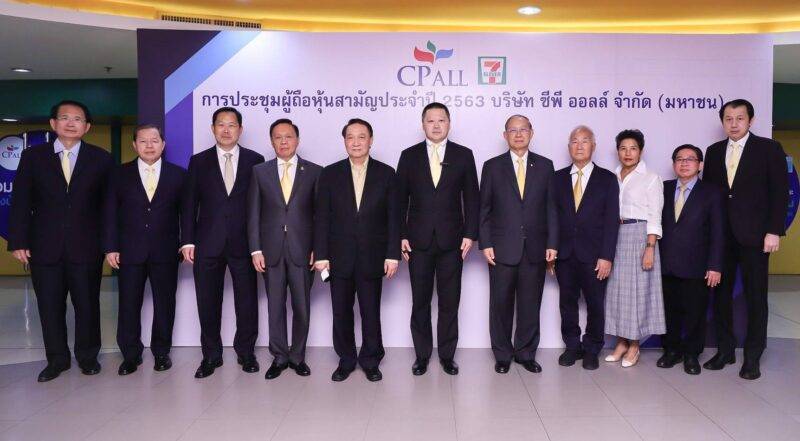นายสุภกิต เจียรวนนท์ (กลาง) ประธานกรรมการ บริษัท ซีพี ออลล์ จำกัด (มหาชน), นายก่อศักดิ์ ไชยรัศมีศักดิ์ (ที่ 5 จากซ้าย) ประธานกรรมการบริหาร บริษัท ซีพี ออลล์ จำกัด (มหาชน) ผู้ก่อตั้งร้านเซเว่น อีเลฟเว่น ในประเทศไทย พร้อมด้วยคณะกรรมการบริษัทฯ จัดประชุมผู้ถือหุ้นสามัญประจำปี 2563 ณ ห้องประชุม 1111AB อาคาร ซี.พี. ทาวเวอร์ ถ.สีลม เมื่อเร็วๆ นี้
