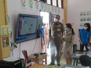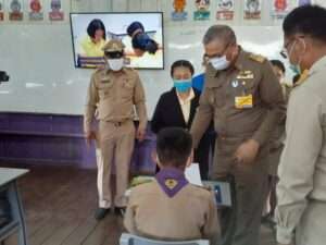 ซึ่งองคมนตรี ฟังการบรรยายสรุปการดำเนินงานในการเรียนการสอน ปัญหาอุปสรรค ตลอดจนความต้องการ ของโรงเรียนบ้านบ่อเบี้ย ได้แก่ ปัญหาขาดแคลนอุปกรณ์การเรียนการสอน ปัญหากระแสไฟฟ้าดับบ่อยทำให้เป็นอุปสรรค์ต่อสื่อการเรียนและสัญญาณอินเทอร์เน็ตล่มบ่อย รวมไปถึงปัญหาสัญญาณดาวเทียมไม่เสถียรทำให้การเรียนทางไกล องคมนตรีและคณะได้ทราบข้อมูลจะนำไปพิจารณาเพื่อให้ความช่วยเหลือโรงเรียนบ้านบ้านบ่อเบี้ย เป็นโรงเรียนที่ตั้งอยู่พื้นที่ห่างไกลและเป็นพื้นที่ติดแนวชายแดนไทย – ลาว เป็นโรงเรียนขยายโอกาส เปิดทำการเรียน การสอน ตั้งแต่อนุบาลถึงมัธยมศึกษาปีที่ 3 มีนักเรียน 88 คน มีข้าราชการครู 9 คน และพนักงานลูกจ้างอีก จำนวน 5 คน รวมเป็น 14 คน