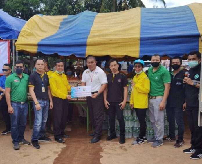 นายบุญส่ง เมฆสงค์ (ที่ 4 จากซ้าย) ผู้จัดการเขตพิเศษ สำนักปฏิบัติการ บมจ.ซีพี ออลล์ ผู้บริหารออลล์ ออนไลน์ และเซเว่น อีเลฟเว่น ในประเทศไทย เป็นผู้แทนมอบน้ำดื่มและไข่ไก่เพื่อช่วยเหลือและบรรเทาความเดือดร้อนให้กับประชาชนที่ประสบเหตุภัยพิบัติน้ำท่วม จ.เลย โดยมี นายจรูญ พานิช (ที่ 3 จากซ้าย) นายกองค์การบริหารส่วนตำบลน้ำสวย เป็นผู้แทนรับมอบ ณ ศูนย์อำนวยการเพื่อการช่วยเหลือผู้ประสบภัยวัดศรีสว่างวารี บ้านสูบ จังหวัดเลย เมื่อเร็วๆนี้