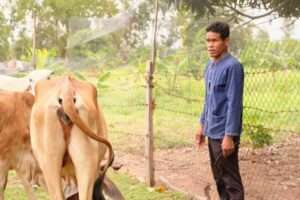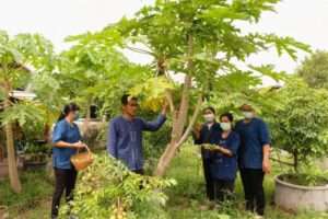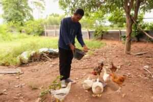 โดยการทำเกษตรทฤษฎีใหม่เริ่มจากการบริหารจัดการน้ำให้เพียงพอด้วยการขุดสระน้ำและเจาะบ่อบาดาลไว้สำรอง พร้อมปลูกข้าว ปลูกพืช อาทิมะนาว ไม้ผล ไม้ยืนต้นหลากหลายชนิด โดยเน้นการปลูกพืช 3 อย่าง ประโยชน์ 4 อย่าง นอกจากนี้ยังได้เลี้ยงกบ เลี้ยงหอย เลี้ยงปลา และเลี้ยงสัตว์เพื่อใช้ปุ๋ยคอกจากมูลสัตว์สำหรับปรับปรุงบำรุงดิน ส่งผลให้มีอาหารปลอดภัยไว้บริโภคในครัวเรือน โดยเฉพาะในช่วงที่กำลังประสบกับโรคระบาดไวรัส-19 ซึ่งแต่เดิมพื้นที่แห่งนี้ทำนาเพียงอย่างเดียว แต่ประสบกับปัญหาเรื่องน้ำ เนื่องจากสภาพพื้นที่เป็นที่ดอน จนกระทั่งได้รับการอบรมเรื่องเกษตรทฤษฎีใหม่ ในต้นปี 2554 จึงได้นำความรู้ที่ได้รับมาปรับใช้ในพื้นที่ของตนเอง เปลี่ยนจากการทำนาเพียงอย่างเดียวหันมาปลูกพืชผสมผสานรูปแบบเกษตรทฤษฎีใหม่ โดยให้ความสำคัญในการบริหารจัดการน้ำเพื่อการเกษตรให้เพียงพอตลอดทั้งปี เป้าหมายแรกคือการทำเพื่อมีกินในครอบครัวเป็นหลัก เริ่มจากการปลูกมะนาวเพียงไม่กี่ต้นและปลูกผักสวนครัว ต่อมาจึงได้ขยาย ปลูกพืชที่หลากหลาย เต็มพื้นที่ พร้อมกับการเลี้ยงสัตว์และขุดบ่อเลี้ยงปลา มีรายได้ทุกวันจากการขายผลผลิตวันละไม่ต่ำกว่า 300 บาท และแม้ว่าจะไม่ได้ขายผลผลิต แต่อย่างน้อยที่สุดก็คือ การลดรายจ่ายในเรื่องค่าอาหาร ซึ่งสามารถเก็บผลผลิตภายในสวนหลังบ้านมาประกอบเป็นอาหารรับประทานภายในครัวเรือนโดยที่ไม่ต้องไปหาซื้อตามท้องตลาด ซึ่งสามารถลดรายจ่ายในแต่ละวันได้เป็นอย่างมาก