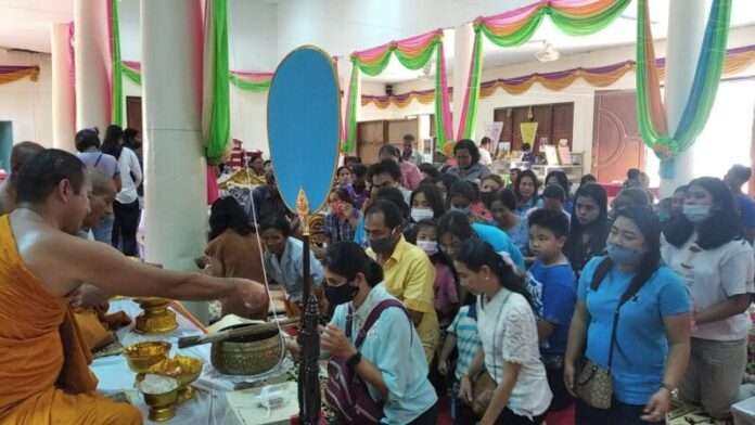 อย่างไรก็ตามหลังเสร็จกิจกรรม พระมหาอารยนันต์ อนันโท เจ้าอาวาสวัดเขาพระทอง ถือโอกาสเนื่องในวันเฉลิมพระชนมพรรษาฯ มอบฟรีหัวนะโม ปัดเป่าโรคร้าย ที่วัดเขาพระทองจัดสร้างขึ้น ให้กับบรรดาลูก และแม่ รวมทั้งชาวบ้านที่เดินทางมาทำบุญที่วัดเขาพระทองวันนี้ ขณะที่ลูกๆ ก็ถือโอกาสทำบุญร่วมสร้างอุโบสถหลังใหม่ของวัดเขาพระทอง โดยเช่าบูชาแหวนหัวนะโม เพื่อสวมใส่ติดตัว เป็นเครื่องรางของขลัง เป็นที่ยึดเหนียวจิตใจ ตามความเชื่อสมัยโบราณเมื่อ 700 ปีก่อน ว่าหัวนะโมสามารถปัดเป่าโรคร้ายได้ ทำให้บรรยากาศบริเวณแผงเช่าแหวนหัวนะโม คึกคักเป็นพิเศษ