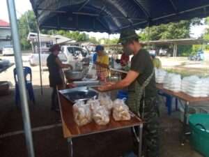 เมื่อวันที่ 28 สิงหาคม 25563 เวลา 10.00 น.ผู้สื่อข่าวรายงานการให้ความช่วยเหลือผู้ประสบภัยอำเภอเวียงสา จ.น่าน แม้ระดับน้ำจะลดสู่ภาวะปกติ มทบ.38/ศบภ.มทบ.38 โดย พ.ท. บัณฑิต ชาวกัณหา ผบ.ม.2 พัน.15 พร้อมคณะนายทหาร เข้าช่วยเหลือผู้ประสบภัยอุทกภัยน้ำป่าไหลหลาก จัดกำลังพล 5 ชุดปฏิบัติการ รวม 60 นาย ร่วมกับหน่วยงานราชการ องค์กรปกครองส่วนท้องถิ่นดำเนินการช่วยเหลือประชาชนที่ได้รับผลกระทบจากเหตุอุทกภัยน้ำป่าไหลหลาก ร่วมฟื้นฟูเก็บกวาด ทำความสะอาดอาคารสถานที่วัด , โรงเรียน , ถนน และที่พักอาศัยบ้านเรือนราษฎร หลังจากปริมาณน้ำลดลงเข้าสู่ภาวะปกติ ในพื้นที่ บ.ดอนแท่น , บ.ดอนแก้ว และ บ.กลางเวียง ต.กลางเวียง อ.เวียงสา จ.น่าน เพื่อให้ประชาชนสามารถดำรงชีวิตเป็นปกติได้โดยเร็ว อีกทั้งยังให้การสนับสนุนรถครัวสนามพร้อมเจ้าหน้าที่ประกอบอาหาร สนับสนุนศูนย์บัญชาการอำนวยการให้ความช่วยเหลือผู้ประสบภัยอำเภอเวียงสา เพื่อประกอบอาหารแจกจ่ายให้กับผู้ประสบภัยวันละ 800-1,000 กล่อง