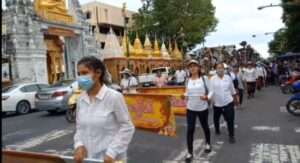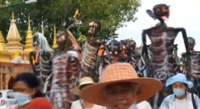 เมื่อเวลา 16.00 น.วันที่ 15 ก.ย.63 ผู้สื่อข่าวรายงานว่า ที่วัดพระมหาธาตุวรมหาวิหารจังหวัดนครศรีธรรมราช มีการปล่อยขบวนแห่พาเหรดหุ่นเปรต งานประเพณีบุญสารทเดือนสิบ จังหวัดนครศรีธรรมราช ประจำปี 2563 ซึ่งจัดโดยคณะกรรรมการจัดกิจกรรมลานตะเกียงเคียงดิน มีการนำขบวนแห่พาเหรดเปรต หุ่นเปรต จากบริเวณหาดทรายแก้ว หน้าพระวิหารหลวง วัดพระมหาธาตุวรมหาวิหาร เดินไปตามถนนราชดำเนิน มุ่งหน้าไปยังลานตะเคียน ตลาดน้ำเมืองลิกอร์ สวนศรีธรรมโศกราช สนามหน้าเมือง