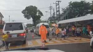 ส่วนบรรยากาศในเช้าวันนี้ มีฝนตกลงมาเล็กน้อย ทำให้ย่านสถานศึกษาหลายแห่งมีรถติด นักเรียนบางรายยังคงกางร่มเดินทางมาเรียนตามปรกติ สำหรับสถานการณ์เขตเทศบาลนครสกลนคร ที่บริเวณหนองสนมจุดรับน้ำแก้มลิงกลางเมืองที่เป็นจุดแรกที่ถูกน้ำท่วมเมื่อปี 2560 ทางเทศบาลนครสกลนคร ได้นำเครื่องสูบน้ำขนาดใหญ่ ขนาดท่อ 12 นิ้ว จำนวน 6 เครื่อง ไปติดตั้งถาวรบริเวณหนองสนม พร้อมกับพร่องน้ำออกลงสู่หนองหาร หากเกิดฝนตกหนักหรือมีปริมาณน้ำจำนวนมาก เพื่อป้องกันน้ำท่วมในเขตเทศบาลนครสกลนคร โดยหนองหารขณะนี้สถานการณ์ยังไม่น่าเป็นห่วง สามารถรองรับปริมาณน้ำได้อีกจำนวนมาก ล่าสุดหนองหารมีปริมาณน้ำ อยู่ที่ 158 ล้านลูกบากศ์เมตร หรือร้อยละ 59 จากความจุเก็บกัก 266 ล้านลูกบากศ์เมตร ซึ่งพายุที่จะพาดผ่านเข้ามาในเร็วๆนี้ กลับกันอาจจะส่งผลดีต่อภาพรวมปริมาณน้ำของทั้งหวัด เนื่องจากฝนทิ้งช่วงและตกปริมาณน้อย ตลอดช่วงฤดูฝนที่ผ่านมา อย่างไรก็ตาม มีบทเรียนจากน้ำท่วมใหญ่เมื่อปี 2560 ซึ่งทุกฝ่ายจะพยายามไม่ให้เกิดซ้ำรอยขึ้นอีก