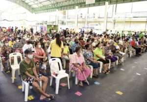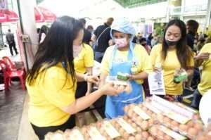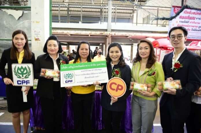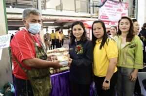 นางนฤมล ภิญโญสินวัฒน์ รัฐมนตรีช่วยว่าการ กระทรวงแรงงาน รับมอบไข่ไก่สดจาก บริษัท เจริญโภคภัณฑ์อาหาร จำกัด (มหาชน) หรือซีพีเอฟ เพื่อมอบแก่ชาวชุมชนคลองเตยล็อค 4-5-6 ที่ร่วมโครงการ “คลินิกพัฒนาฝีมือแรงงานเคลื่อนที่ เพื่อคนไทยมีงานทำ” จัดโดยสถาบันพัฒนาฝีมือแรงงาน 13 กรุงเทพมหานคร โดยมี นางจินตนา วัลยเสวี ผู้จัดการ สำนักประสานงานประกันสังคม ซีพีเอฟ เป็นผู้มอบ