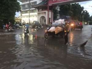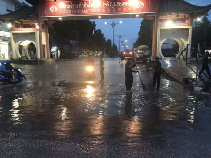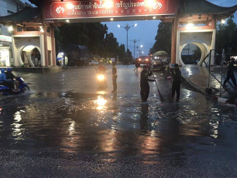 ผู้สื่อข่าวรายงานว่า ช่วงเช้ามืดวันที่ 28 ก.ย. 63 ได้เกิดฝนตกในพื้นที่ อ.อรัญประเทศ จ.สระแก้ว อย่างหนัก ทำให้เกิดน้ำท่วมขังประาณ 30 ซม. บนถนนศรีเพ็ญ ซึ่งเป็นถนนเลียบแนวชายแดน บริเวณหน้าตลาดศูนย์การค้าอินโดจีน(อรัญประเทศ) ซึ่งอยู่ตรงข้ามตลาดโรงเกลือ อ.อรัญประเทศ จ.สระแก้ว บางส่วนไหลเข้าท่วมพื้นที่ในตลาดโรงเกลือ