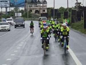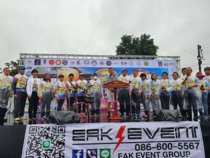 หลังจากนั้น ผวจ.ปทุมธานี ได้สัญญาณปล่อยขบวนนักปั่นจักรยานสาย A (ระยะทาง 12 กิโลมตร) จำนวน 300 คัน และสาย B (ระยะทาง 42 กิโลมตร) จำนวน 1,200 คัน โดย ผวจ.ปทุมธานี หน.ส่วนราชการ ผอ.สำนักงาน ททท.สำนักงานกรุงเทพมหานคร นักปั่นวีไอพี ได้ร่วมปั่นจักรยานไปกับนักปั่นสาย A ท่ามกลางสายฝน