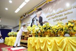 จังหวัดปทุมธานี จัดพิธีวางพานพุ่มเนื่องในวันพระบิดาแห่งฝนหลวง ประจำปี 2563