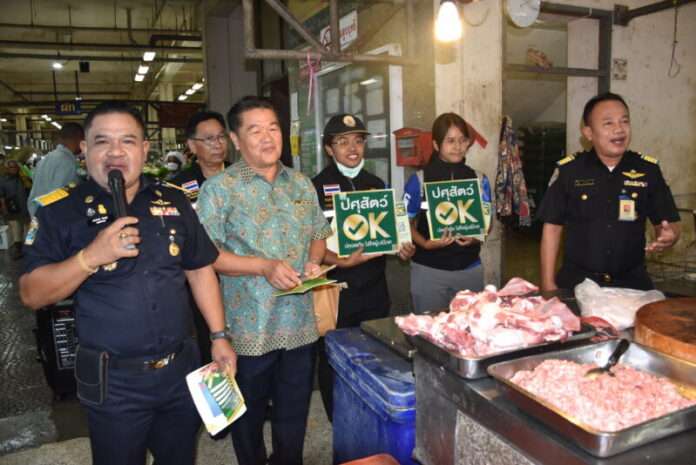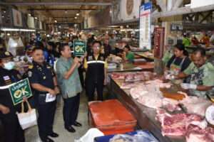 18 พ.ย.63 นายปรีชา ชนะกิจกำจร รองผู้ว่าราชการจังหวัดนครศรีธรรมราช พร้อม นายเศกสรรค์ สวนกูล ปศุสัตว์จังหวัดนครศรีธรรมราช และคณะ ลงพื้นที่ตลาดสดเทศบาลนครนครศรีธรรมราช หรือ ตลาดสดคูขวาง เพื่อประชาสัมพันธ์โครงการเนื้อสัตว์ปลอดภัย ใส่ใจผู้บริโภค หรือ ปศุสัตว์ OK ให้แก่ผู้ค้าซากสัตว์ และผู้บริโภค มีความรู้และความเข้าใจโครงการดังกล่าว ซึ่งมีจุดมุ่งหมายเพื่อตรวจสอบและรับรองกระบวนการผลิตรวมถึงสถานที่จำหน่ายเนื้อสัตว์ให้ได้มาตรฐานตามที่กำหนด รวมทั้งเป็นการสร้างความมั่นใจและส่งเสริมให้ประชาชนได้เลือกซื้อสินค้าปศุสัตว์ที่ปลอดภัยต่อการบริโภค