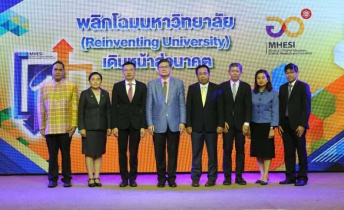 กระทรวงการอุดมศึกษา วิทยาศาสตร์ วิจัยและนวัตกรรม (อว.) เดินหน้าผลักดันโครงการพลิกโฉมมหาวิทยาลัย (Reinventing University) เพื่อให้สถาบันอุดมศึกษาทั่วประเทศปฏิรูปการบริหารงานและปรับเปลี่ยนหลักสูตรการสอนให้ทันต่อการเปลี่ยนแปลงของสังคม สามารถผลิตบุคคลากรคุณภาพสูง มุ่งตอบสนองความต้องการตลาด เพื่อเพิ่มขีดความสามารถทางการแข่งขันให้กับประเทศ พร้อมยกระดับคุณภาพมหาวิทยาลัยไทยให้ทัดเทียมนานาชาติและเป็นกลไกสำคัญในการขับเคลื่อนประเทศสู่ยุค 4.0 ได้อย่างสมบูรณ์