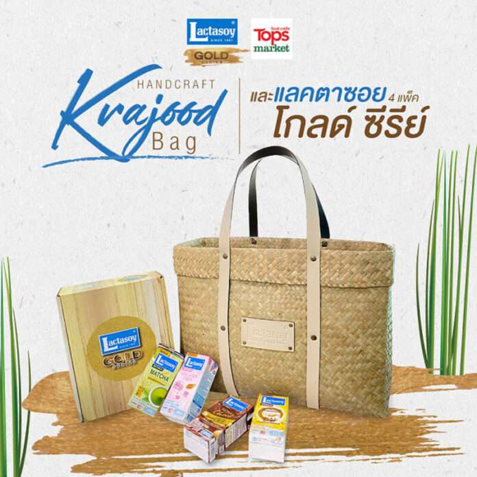 กระเป๋ากระจูด Handcraft กระแสตอบรับดีเกินคาด “แลคตาซอย” จัดเซ็ทเอาใจผู้บริโภคที่ชื่นชอบนมถั่วเหลืองและกระเป๋างานดีจากภูมิปัญญาท้องถิ่น โดยในเซ็ทประกอบด้วย นมถั่วเหลืองแลคตาซอย โกลด์ซีรีย์ บรรจุ 12 กล่อง 4 รสชาติเข้มข้น ได้แก่ คอลลาเจน ไฟเบอร์ ขนาด 180 ml. จำนวน 3กล่อง ชาเขียวมัทฉะ ขนาด 180 ml. จำนวน 3 กล่อง เอ็กซ์ตร้าช็อกโก ขนาด 180 ml. จำนวน 3 กล่อง และ ไฮแคลเซียม ผสมโสมสกัด ขนาด 180 ml. จำนวน 3 กล่อง จับใส่กระเป๋ากระจูด Handcraft สุดน่ารัก รังสรรค์ด้วยภูมิปัญญาท้องถิ่นจาก “ดา กานดา Shop” จังหวัดพัทลุง วางจำหน่ายที่ท็อปส์ ซูเปอร์มาร์เก็ต 73 สาขา ทั่วประเทศ ในราคา 435 บาท ตั้งแต่วันที่ 1 ธ. ค .นี้ (หรือจนกว่าสินค้าจะหมด)