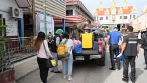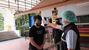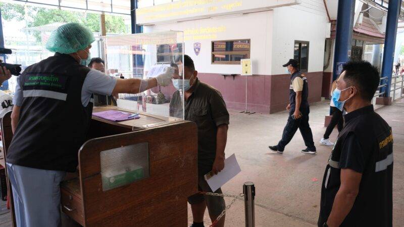 เมื่อเวลา 09.30 น.วันที่ 2 ธ.ค. 63 ที่ด่านควบคุมโรคติดต่อระหว่างประเทศ บริเวณจุดคัดกรองด่าน ตม.อรัญประเทศ จุดผ่านแดนถาวรบ้านคลองลึก อ.อรัญประเทศ จ.สระแก้ว นายธนกฤต สายสิญจน์ หัวหน้าด่านควบคุมโรคติดต่อระหว่างประเทศ อรัญประเทศฯร่วมกับ พ.ต.อ.อาทิตย์ ยาแก้ว ผกก.ตม.จว.สระแก้ว, ร.ต.ธิติวุฒ ยีนุช ผบ.ร้อย ทพ.1201(ผู้บังคับกองร้อยทหารพรานที่1201) และ พ.ต.อ.ฐนพงศ์ โพธิ์ทิ ผกก.สภ.คลองลึกฯ สนธิกำลังตรวจคัดกรองคนไทยที่ได้รับอนุญาตเดินทางกลับจากประเทศกัมพูชา เข้าประเทศไทย ผ่านจุดผ่านแดนถาวรบ้านคลองลึก อ.อรัญประเทศ จ.สระแก้ว จำนวน 6 คน เป็นชาย 3 คน หญิง 3 คน ตรวจคัดกรองอย่างเข้มงวด ตั้งแต่วัดอุณหภูมิร่างกาย ฉีดพ่นยาฆ่าเชื้อตามร่างกายและกระเป๋าสัมภาระ พร้อมทั้งตรวจเอกสารการเดินทางและเอกสารใบรับรองแพทย์จากโรงพยาบาลกัมพูชา ก่อนให้กรอกประวัติและคำยินยอมให้ทำการกักตัวเป็นเวลา14วันในสถานที่รัฐจัดให้