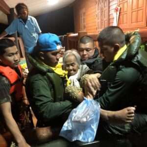 ขณะเดียวกันยังย้ำขอให้จัดกำลังพลและเครื่องมือช่างลงพื้นที่ให้การช่วยเหลือเร่งด่วนกับประชาชนในพื้นที่วิกฤติที่น้ำยังคงท่วมสูง อพยพประชาชนออกจากพื้นที่เสี่ยงเข้าศูนย์อพยพที่จัดตั้งขึ้น และให้การช่วยเหลือประชาชนในพื้นที่ตัดขาด  ทั้งนี้ให้ประสานกับฝ่ายปกครองในพื้นที่ สนับสนุนกำลังพลและเครื่องสูบน้ำเข้าช่วยเหลือโรงพยาบาลที่ได้รับผลกระทบให้สามารถดำรงความต่อเนื่องทางการแพทย์  พร้อมทั้งสนับสนุนรถครัวสนามเคลื่อนที่และร่วมกับจิตอาสาแจกจ่ายถุงยังชีพกับประชาชนที่ประสบภัยที่ตกค้างในพื้นที่ โดยเฉพาะพื้นที่เสี่ยง  ทั้งนี้ ให้สนับสนุน เร่งสถาปนาระบบการติดต่อสื่อสารที่ถูกตัดขาด เพื่อดำรงการติดต่อการช่วยเหลือประชาชนในพื้นที่ จนกว่าสถานการณ์จะดีขึ้น