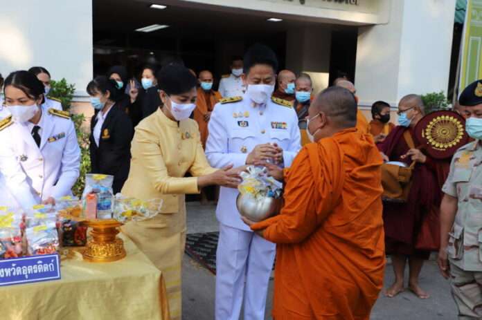 เมื่อเวลา 07.30 น. วันที่ 5 ธันวาคม 63 ที่หอประชุมใหญ่มหาวิทยาลัยราชภัฏอุตรดิตถ์ นายผล ดำธรรม ผวจ.อุตรดิตถ์ เป็นประธานในพิธีทำบุญตักบาตรถวายพระราชกุศล เนื่องในวันคล้ายวันพระบรมราชสมภพ พระบาทสมเด็จพระบรมชนกาธิเบศร มหาภูมิพลอดุลยเดชมหาราชบรมนาถบพิตร วันชาติและวันพ่อแห่งชาติ ประจำปี 2563 พร้อมด้วย นางวันทานา ดำธรรม นายก เหล่ากาชาดฯ และนายพิภัช ประจันเขตต์ รอง ผวจ.อุตรดิตถ์ (1) นายสหวิช อภิชัยวิศรุตกุล รอง ผวจ.อุตรดิตถ์ (2) โดยมี ข้าราชการชั้นผู้ใหญ่ ทั้งฝ่าย ตุลาการ ทหาร ตำรวจ พร้อมหัวหน้าส่วนราชการ ข้าราชการ ภาคเอกชน จิตอาสาพระราชทาน นักเรียน นักศึกษา ประชาชนร่วมพิธี จำนวนมาก