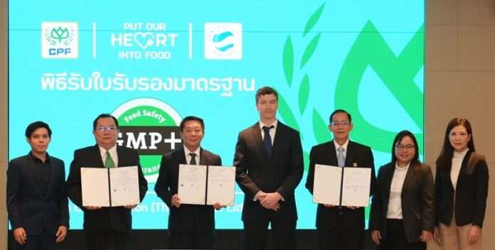 บริษัท เจริญโภคภัณฑ์อาหาร จำกัด (มหาชน) หรือ ซีพีเอฟ รับมาตรฐานรับรองระบบความปลอดภั ยอาหารสัตว์ในระดับสากล GMP+ B1 B2 และ B3 เป็นรายแรกและรายเดียวของไทยที่ ได้รับการรับรองระบบ GMP+ ตลอดทั้ง Feed Value Chain สะท้อนภาพลักษณ์ผู้นำการผลิตภั ณฑ์อาหารสัตว์ปลอดภัย เพื่อผลิตอาหารปลอดภัยสู่ผู้บริ โภคทั่วโลก