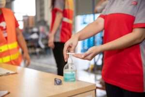 สำหรับทีมจัดส่งหรือ JD MAN จะมีการตรวจคัดกรองอุณหภูมิก่อนเริ่มปฏิบัติงานในทุกวัน และทุกครั้งที่เข้าออกพื้นที่ปฏิบัติงานทุกแห่ง เจ้าหน้าที่ทุกคนจะสวมแมสค์ป้องกันตลอดเวลาปฏิบัติงาน รวมถึงล้างมือด้วยเจลแอลกอฮอล์ก่อนและหลังสัมผัสพัสดุที่จัดส่ง สำหรับทีมสนับสนุนที่ปฏิบัติงานประจำสำนักงาน หรือสาขา หรือการปฏิบัติงานแบบ Work From Home นั้น จะหลีกเลี่ยงการพบปะผู้คน สวมใส่หน้ากากอนามัย เมื่อต้องออกนอกสถานที่ ล้างมือด้วยเจลแอลกอฮอล์เป็นประจำ รวมถึงการทำความสะอาดเสื้อผ้า ที่นอน ของใช้ส่วนตัว การแยกสำรับอาหารไม่รับประทานร่วมกับหรือปะปนกับผู้อื่น และสังเกตอาการหากพบว่ามีอาการผิดปกติหรือรู้สึกไม่สบาย จะเข้าพบแพทย์เพื่อรับการตรวจรักษาทันที รวมถึงแจ้งให้ทางสำนักงานได้รับทราบเพื่อการติดตามรายละเอียดของอาการต่อไป