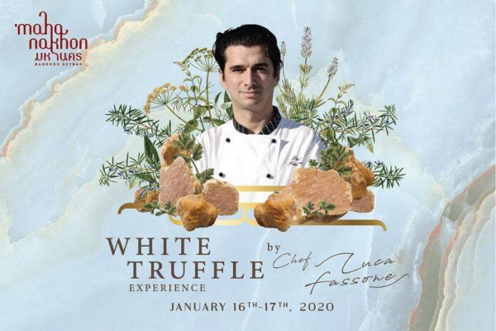 มหานคร แบงค็อก สกายบาร์ ภูมิใจนำเสนอ เชฟลูก้า ฟาสโซเน (Luca Fassone) แห่งห้องอาหาร L’Angolo di Rosina ประเทศอิตาลี ที่พร้อมนำสุดยอดวัตถุดิบสุดพรีเมี่ยมแห่งฤดูหนาวอย่าง “ไวท์ทรัฟเฟิล” หรือเห็ดทรัฟเฟิลขาว มารังสรรเป็นเมนูสุดพิเศษ อาทิ ทาจารีนพาสต้า ที่เชฟลูก้านำเส้นพาสต้าสดสูตรดั่งเดิมของครอบครัวมาผสมผสานเข้ากับซอสเห็ดทรัฟเฟิลขาวได้อย่างลงตัว รวมทั้งเมนูไฮไลท์อื่นๆ อาทิ พีดมอนต์ทาร์ทาร์ และสเต๊กสันนอกลูกวัวเสิร์ฟพร้อมซอสเห็ดทรัฟเฟิลขาว ที่เชฟเตรียมมาให้ทุกท่านได้ลิ้มลองพร้อมวิวทิวทัศน์อันงดงามบนห้องอาหารและบาร์ที่สูงที่สุดในประเทศไทย กับเมนูอาหารค่ำ 7 คอร์ส ในราคาเพียง 7,000++ บาท/ท่าน* ระหว่างวันพฤหัสบดีที่ 16 ถึงวันศุกร์ที่ 17 มกราคม 2563 และเมนูอาหารกลางวัน 4 คอร์ส ในราคาเพียง 3,000++ บาท/ท่าน* ในวันศุกร์ที่ 17 มกราคม 2563 ณ ห้องอาหารมหานคร แบงค็อก สกายบาร์ สนใจสำรองที่นั่งล่วงหน้าได้ที่ http://bit.ly/Luca-Fassone-White-Truffle