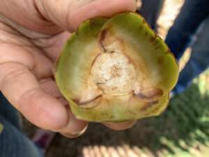 กรมวิชาการเกษตร เตือนภัยไรสี่ขารุกระบาดช่วงแล้ง หลังพบเข้าทำลายสวนมะพร้าวน้ำหอม จ.ฉะเชิงเทรา ผลมีปลายแผลแหลมลึกสีน้ำตาลเกือบรอบผล ชี้ความเสียหายหนักสุดทำผลเล็กลีบและร่วงหล่นขายไม่ได้ สวนที่ระบาดรุนแรงแนะตัดช่อดอกและช่อผล เก็บผลและเศษซากจากการปอกมะพร้าวไปทำลายตัดวงจรไรไม่ให้กลับมาระบาดซ้ำ