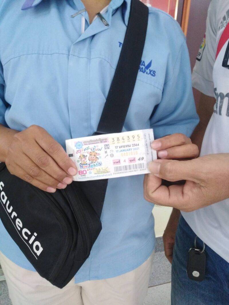 ผู้สื่อข่าวรายงานว่า เวลาประมาณ 17.00 น.ของวันที่ 17 ม.ค.64 นางกัลย์สุดา ทองแดง อายุ 45 ปี ปัจจุบันพักอยู่บ้านเช่าที่หมู่ 4 ตำบลมาบยางพร อำเภอปลวกแดง จังหวัดระยอง พร้อมสามี นำสลากกินแบ่งรัฐบาลงวดประจำวันที่ 17 ม.ค.64 งวดที่ 4 ชุดที่49 หมายเลข 384395 ซึ่งถูกรางวัลที่หนึ่งงวดประจำวันที่ 17 ม.ค.64 จำนวน 1 ฉบับ มูลค่า 6,000,000 บาท เข้าพบ พ.ต.ต.สมัย สาดี สว.สอบสวน สภ.ปลวกแดง จ.ระยอง เพื่อขอลงบันทึกประจำวันไว้เป็นหลักฐาน