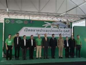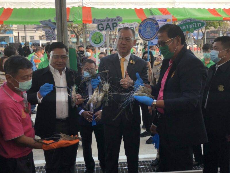 20 ม.ค.64/ นายเฉลิมขัย ศรีอ่อน รัฐมนตรีว่าการกระทรวงเกษตรและสหกรณ์ เป็นประธานการเปิดงานการเปิดตลาดประมงปลอดภัย GAP” ภายใต้โครงการ”ส่งเสริมและการพัฒนาการตลาดสินค้าประมงปลอดภัยในพื้นที่ตลาดไท “ณ ตลาดไท อำเภอคลองหลวง จังหวัดปทุมธานี โดยมีนายอลงกรณ์ พลบุตร ที่ปรึกษา รมว. เกษตรฯ นายมีศักดิ์ ภักดีคง อธิบดีกรมประมง นายวัฒนศักย์ เสือเอี่ยม อธิบดีกรมการค้าภายใน นายโชคชัย คลศรีชัย กรรมการผู้จัดการ บริษัทไทยแอ็กโกร เอ็กซเชนจ์ จำกัด (ตลาดไท) นายโอฬาร พิทักษ์ ที่ปรึกษาตลาดไท พร้อมด้วยนายประกอบ ทรัพย์ยอดแก้ว นายกสมาคมเพาะเลี้ยงสัตว์น้ำไทย (ผู้แทนเกษตรกรกุ้งก้ามกราม) นายชาลี จิตรประสงค์ ประธานชมรมผู้เลี้ยงกุ้ง ฉะเชิงเทรา (ผู้แทนเกษตรกรกุ้งขาวแวนาไม) และนายสุทธิ มะหะเลา นายกสมาคมผู้เพาะเลี้ยงปลาทะเลไทย (ผู้แทนเกษตรกรปลากะพงขาว) ให้การต้อนรับ