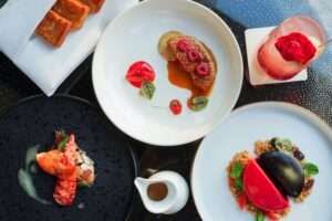 ส่วนมื้อค่ำ “A Romantic Escapade” มาพร้อมกับที่นั่งมุมพิเศษสำหรับคุณและคนรัก โดยนำเสนออาหารค่ำ 7 คอร์ส ที่ประกอบไปด้วยหอยนางรมมองซิเออร์ ณ็อง-ปอล และออสเซียตร้า คาเวียร์ อาร์ติโชคตุ๋นสไตล์ฝรั่งเศส ซุปเห็ดทรัฟเฟิล ฟัวกราส์ย่างและเบอร์รี่ เมนล็อบสเตอร์และหอยเม่นจากฮอคไกโด ช็อคโกแลตเค้ก และเปอตีต์ส ฟูร์ส พร้อมด้วยเครื่องดื่ม ช่อดอกไม้ คอร์สทรีตเมนต์ “Body and Soul” สำหรับ 2 ท่านจาก Let’s Relax Spa มูลค่า 4,600 บาท และอัลบัมภาพที่ระลึกดีไซน์สำหรับวันวาเลนไทน์โดยเฉพาะ โดยเมนูพิเศษดังกล่าวให้บริการเฉพาะวันที่ 14 กุมภาพันธ์ 2564 เท่านั้น ระหว่างเวลา 17:00 – 23:00 น.
