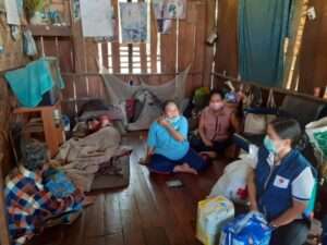 นายสังคม คัดเชียงแสน นายอำเภอแม่สะเรียง มอบหมายให้ นางวิลาวัณย์ คัดเชียงแสน นายกกิ่งกาชาดอำเภอแม่สะเรียงพร้อม กรรมการสมาชิกกาชาด เดินทางเยี่ยมผู้ป่วยฐานะยากจน มอบถุงยังชีพพร้อมมอบเงินช่วยเหลือให้ นางบือ เรืองวิไลพร อายุ 70 ปี อ.แม่สะเรียง จ.แม่ฮ่องสอน ณ บ้านเลขที่ 7/14 บ้านโป่งดอยช้าง หมู่ที่ 13 ต.บ้านกาศ อ.แม่สะเรียง จ.แม่ฮ่องสอน เพื่อเป็นค่าใช้จ่ายในการเดินทางไปรักษาตัวที่โรงพยาบาล พบเป็นบ้านไม้ชั้นเดียวมีใต้ถุน หลังคามุงด้วยใบตองตึง และข้างฝากั้นด้วยไม้ไผ่สานแตะสภาพทรุดโทรม อาศัยอยู่ด้วยกัน 4 คนแม่ลูก