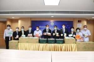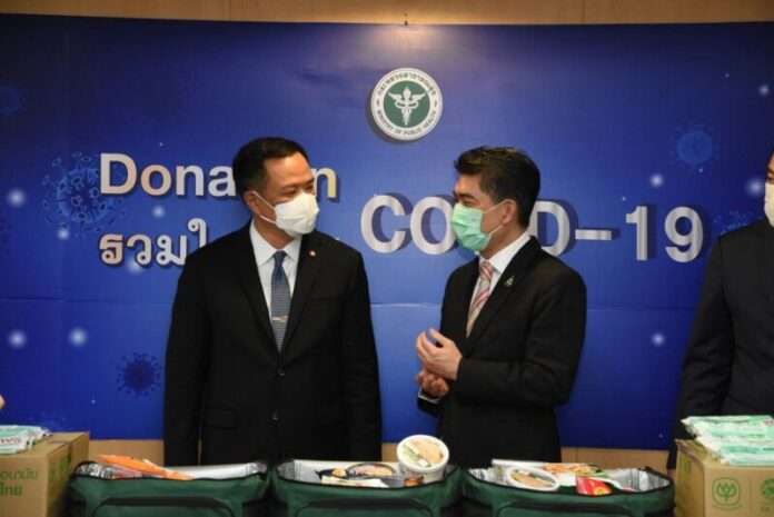 วันที่ 4 กุมภาพันธ์ 2564 นายอนุทิน ชาญวีรกูล รองนายกรัฐมนตรีและ รัฐมนตรีว่าการกระทรวงสาธารณสุข พร้อม นายแพทย์เกียรติภูมิ วงศ์รจิต ปลัดกระทรวงสาธารณสุข นายแพทย์ณรงค์ สายวงศ์ รองปลัดกระทรวงสาธารณสุข และนายแพทย์โอภาส การย์กวินพงศ์ อธิบดีกรมควบคุมโรค รับมอบหน้ากากอนามัยซีพี จำนวน 30,000 ชิ้น และผลิตภัณฑ์อาหารคุณภาพพร้อมทานจำนวน 83,200 แพ็ค เป็นกำลังใจให้บุคลากรทางการแพทย์ และผู้ป่วย จากนายประสิทธิ์ บุญดวงประเสริฐ ประธานคณะผู้บริหาร บริษัท เจริญโภคภัณฑ์อาหาร จำกัด (มหาชน) และขอบคุณ เครือซีพี – ซีพีเอฟ ในการดำเนินโครงการ “CPF ส่งมอบอาหารจากใจ ร่วมต้านภัยโควิด-19” ช่วยสนับสนุนภารกิจของภาครัฐในการควบคุมการแพร่ระบาดโรคติดเชื้อไวรัสโควิด-19 ระลอกใหม่ ณ อาคารสำนักงานปลัดกระทรวงสาธารณสุข ถนนติวานนท์