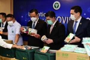 นายอนุทิน กล่าวว่า ในนามของกระทรวงสาธารณสุข และรัฐบาล ขอขอบคุณเครือซีพี – ซีพีเอฟ ที่ได้ช่วยดูแลสังคมไทย เหมือนกับทุกครั้งที่ประเทศไทยประสบภัยพิบัติ จะเห็นเครือซีพีและซีพีเอฟ ออกมาเป็นรายแรกๆ ที่ให้ความช่วยเหลือประเทศชาติและประชาชน ด้วยการสนับสนุนผลิตภัณฑ์อาหารพร้อมทาน และหน้ากากอนามัยซีพี ถือเป็นการช่วยแบ่งเบาภารกิจของภาครัฐ เป็นกำลังใจที่ดีให้กับทีมแพทย์ พยาบาล รวมทั้ง ผู้ที่มากักตัวที่โรงพยาบาลสนามได้มีคุณภาพชีวิตที่ดี