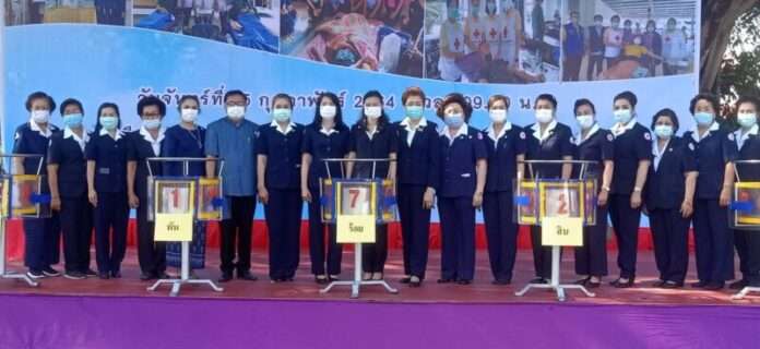 วันที่ 15 ก.พ.2564 ที่สนามหน้าสำนักงานเหล่ากาชาด จ.สกลนคร นายมนต์สิทธิ์ ไพศาลธนวัฒน์ ผวจ.สกลนคร พร้อมด้วย นางวารุณี ไพศาลีธนวัฒน์ นายกเหล่ากาชาดฯ ตลอดจนสมาชิกเหล่ากาชาด และ หน.ส่วนราชการ ร่วมกันหมุนวงล้อ เพื่ออกสลาก งานรวมน้ำใจไทสกลและงานกาชาด ประจำปี 2564 ซึ่งเดิมมีกำหนดจัดขึ้นระหว่างวันที่ 5-14 ก.พ. นี้ แต่เนื่องจาดสถานการณ์การแพร่ระบาดของโรคโควิด 19 ยังคงมีการแพร่ระบาดอยู่ เพื่อให้เป็นไปตาม พรบ.ของกรมควบคุมโรค จึงต้องเลื่อนการจัดงานออกไปไม่มีกำหนด แต่สลากได้มีการจำหน่ายไปหมดแล้ว ดังนั้น เพื่อความโปร่งใสจึงต้องออกสลากตามกำหนด ผลการออกสลากมีดังนี้ รางวัลที่1 รถยนต์กะบะ ปริมาตรกระบอกสูบไม่ต่ำกว่า 2,400 ซีซี. จำนวน1 รางวัลได้แก่หมายเลข41720