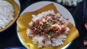 ส่วนวัตถุดิบเรามีให้เลือกหลากหลาย เช่น หมึกไข่ กั้ง กุ้ง หอยเชลล์ หอยแมลงภู่ ปลาฉลาม ไข่ปลาเรียวเซียว ปูนิ่ม ปลาโอ เนื้อปู เป็นต้น แล้วแต่ว่าลูกค้าจะสั่งให้ทำอะไร มีทั้งผัดเผ็ด ผัดกระเพา ผัดฉ่า ผัดพริกไทยดำ ทอดกระเทียมพริกไทย ต้มยำ แล้วแต่ลูกค้าจะชอบแบบไหน โดยจะผัดราดข้าวเป็นจาน ราคาเริ่มต้นที่จากละ 50 บาท ถ้าเป็นผัดทะเลรวมก็ราคา 60-70 บาท ถ้าเป็นเมนูที่มีไข่ปลาเรียวเซียวผสมราคาจานละ 100 บาท เพราะไข่ปลาเรียวเซียวหายากขายดีหมดเร็ว และไม่มีทุกวันต้องรอชาวประมงเขาจับปลาได้ถึงจะมี ถ้าลูกค้าเพิ่มไข่ดาวจะจะเพิ่มอีก 5 บาท