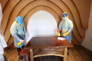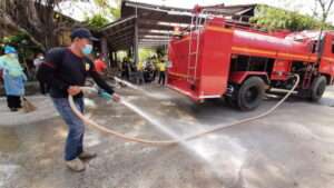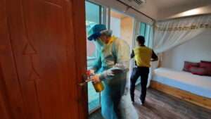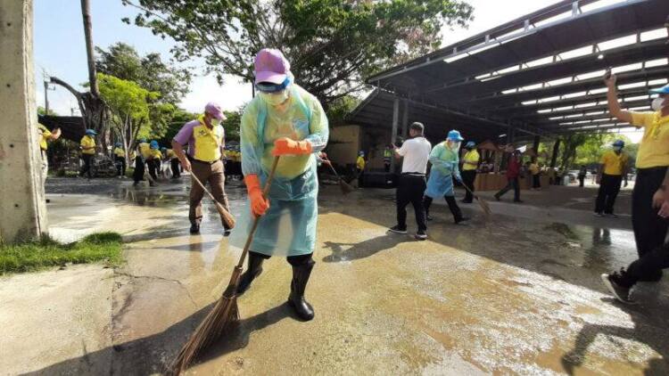 เมื่อเวลา 09.30 น.วันที่ 4 มี.ค.ที่บริเวณตำนานป่ารีสอร์ท ต.เพ อ.เมืองระยอง จ.ระยอง นายชาญนะ เอี่ยมแสง ผู้ว่าราชการจังหวัดระยอง เป็นประธานนำจิตอาสาชาวจังหวัดระยอง ร่วมกิจกรรมทำความสะอาดสถานที่กักกันตัวผู้สัมผัสใกล้ชิดผู้ติดเชื้้อโควิด-19 เก็บกวาดขยะ ล้างพื้นถนนและเช็ดถูด้วยยาฆ่าเชื้อภายในห้องพักอาคารเรือนนอนของผู้เฝ้าระวังเพื่อสังเกตอาการหรือกลุ่มเสี่ยง 1อาคาร 20 ห้อง ผู้สัมผัสใกล้ชิดผู้ติดเชื้อโควิด-19 หรือ Local Quarantine ใช้เป็นเวลา 60 วัน จนเป็นที่พอใจไม่มีผู้มาพักใช้แล้ว