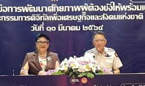 10 มี.ค.64 –นางวรรณพร เทพหัสดิน ณ อยุธยา เลขาธิการคณะกรรมการดิจิทัลเพื่อเศรษฐกิจและสังคมแห่งชาติ(ลดช.) และ  นายอายุตม์ สินธพพันธุ์ อธิบดีกรมราชทัณฑ์  ร่วมพิธีลงนามบันทึกข้อตกลงความร่วมมือ การพัฒนาศักยภาพผู้ต้องขังให้พร้อมเข้าสู่ยุคเศรษฐกิจและสังคมดิจิทัล ระหว่าง สำนักงานคณะกรรมการดิจิทัลเพื่อเศรษฐกิจและสังคมแห่งชาติ และกรมราชทัณฑ์ ที่ห้องวายุภักดิ์ 4 โรงแรมเซ็นทรา บาย เซ็นทารา ศูนย์ราชการแจ้งวัฒนะ