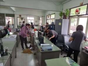 นายนิพนธ์ จำนงสิริศักดิ์ ผู้อำนวยการสำนักบริหารพื้นที่อนุรักษ์ที่ 3 (บ้านโป่ง) พร้อมด้วย ผู้อำนวยการส่วนบริหาร หัวหน้ากลุ่มบริหาร และคณะเจ้าหน้าที่ของ สบอ.3 (บ้านโป่ง) ร่วมดำเนินการจัดกิจกรรม 5 ส. Big Cleaning Day วันทำความสะอาดใหญ่ ประจำปี พ.ศ.2564 (ไตรมาส 2) ณ สำนักบริหารพื้นที่อนุรักษ์ที่ 3 (บ้านโป่ง) จ.ราชบุรี โดยเจ้าหน้าที่ทุกหน่วยงานได้ร่วมกันดำเนินการทำความสะอาดพื้นที่ โดยรอบบริเวณอาคารสำนักงานและห้องทำงาน ตัดแต่งต้นไม้รอบรั้วสำนักงาน เก็บกวาดใบไม้บริเวณสนามหญ้า ซี่งเป็นการปฏิบัติตามแนวทางสำนักงานสีเขียว (Green Office) และดำเนินการตามนโยบายลดคัดแยกขยะมูลฝอย มีการรณรงค์การคัดแยกขยะ งดใช้กล่องโฟมและถุงพลาสติกทุกชนิด ช่วยอนุรักษ์รักษาธรรมชาติและสิ่งแวดล้อม ทั้งนี้เพื่อให้สำนักงานมีความสะอาด เป็นระเบียบเรียบร้อย ทั้งยังเป็นการสานต่อกิจกรรม 5 ส. และร่วมกันบำเพ็ญประโยชน์สาธารณะเพื่อส่วนรวมต่อไป.