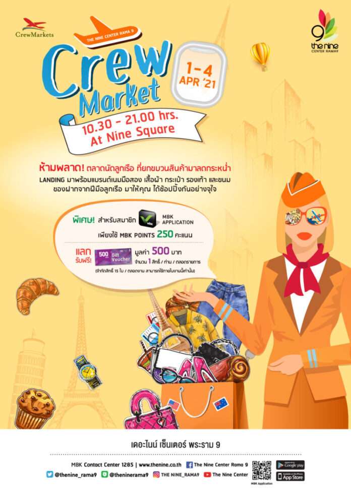 ถึงเวลาของเหล่าแฟชั่นนิสต้า และขาช้อปตัวจริง กับสินค้าคุณภาพที่เหล่าลูกเรือไทยรวบรวมมาไว้ให้ในงาน “CREW MARKET” (ครูว์ มาร์เก็ต) ทั้งแฟชั่นเสื้อผ้า สินค้าแบรนด์เนมมือสองสภาพดี ของฝากหายากจากหลากหลายประเทศ รวมถึงอาหารโฮมเมดเพื่อสุขภาพ จากเหล่าสจ๊วตและแอร์โฮสเตสหล่อ-สวย ที่แปลงโฉมเป็นเชฟเฉพาะกิจ ทำของอร่อยให้ผู้โดยสารเที่ยวบินพิเศษทุกท่าน