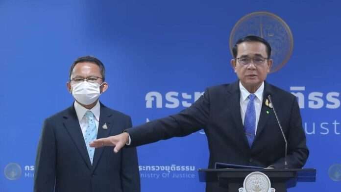 พลเอกประยุทธ จันทรโอชา นายกรัฐมนตรี ประธานพิธีมอบประกาศนียบัตรเหรียญอาสายุติธรรม ในงานสถาปนากระทรวงยุติธรรมครบรอบ 130 ปี