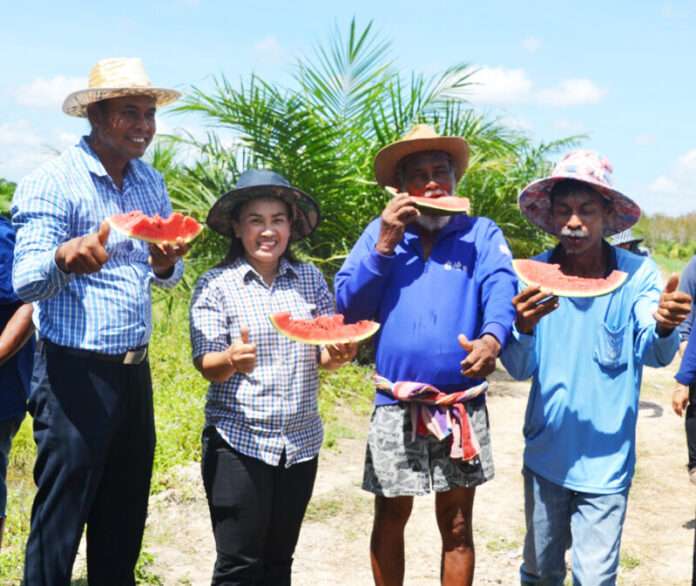 นางสาวศรอนงค์ สงสมพันธ์ นายอำเภอควนขนุน จ.พัทลุง เผยว่า ในพื้นที่ ต.แหลมโตนด อ.ควนขนุน ซึ่งเป็นพื้นที่ในโครงการลุ่มน้ำปากพนัง อันเนื่องมาจากพระราชดำรินั้น เกษตรกรในพื้นที่ดังกล่าวทั้ง 9 หมู่บ้าน ได้รวมตัวกันจัดตั้งกลุ่มปลูกแตงโม “แหลมโตนด “ ในพื้นที่สวนยางพารา ปาล์มน้ำมัน และสวนมะพร้าวน้ำหอม ที่มีอายุ 1–3 ปี ไม่น้อยกว่า 80 ราย โดยในปี 2564 นี้มีพื้นที่ปลูกแตงมากกว่า 600 ไร่ จนสามารถสร้างงาน สร้างรายได้ ให้แก่กลุ่มสมาชิกดังกล่าวไม่น้อยกว่า 15 ล้านบาท เนื่องจากแตงโม “แหลมโตนด “ เป็นแตงโมที่ปลูกในดินร่วนปนทราย มีแหล่งน้ำอย่างเพียงพอ จนทำให้แตงโมมีรสหวาน เนื้อแน่น และเนื้อเป็นทราย ทำให้มีพ่อค้า แม่ค้า จากจังหวัดต่างๆ โดยเฉพาะพ่อค้าจาก จ.สตูล ตรัง และ จ.นครศรีธรรมราช เข้ามารับซื้อถึงแปลงปลูกอย่างต่อเนื่อง จนมีชื่อเสียงโด่งดังไปทั่วภาคใต้