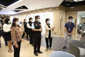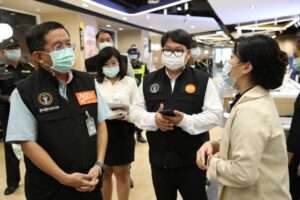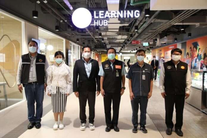 ว่าที่ร้อยตรี สรวุฒิ วิเศษสงวน ผู้ช่วยผู้อำนวยการเขตปทุมวัน พร้อมด้วย ประจวบ น้อยอามาตย์ หัวหน้าฝ่ายสิ่งแวดล้อมและสุขาภิบาล และเจ้าหน้าที่เทศกิจกรุงเทพมหานคร สำนักเขตปทุมวัน มาเยี่ยมชมพร้อมดูแนวทางดำเนินการปฏิบัติตามมาตรการป้องกันเชื้อไวรัสโควิด-19 ของสถาบันการศึกษา บริเวณ Learning Hub ชั้น 5 โซน D ศูนย์การค้าเอ็ม บี เค เซ็นเตอร์