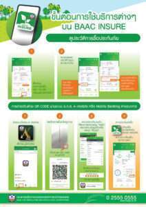 นายธนารัตน์ กล่าวต่อไปว่า เพื่อสนับสนุนให้เกษตรกรมีภูมิคุ้มกันทางการผลิต ธ.ก.ส. ได้จ่ายสมทบค่าเบี้ยประกันภัยให้กับเกษตรกรลูกค้าที่ใช้บริการสินเชื่อกับ ธ.ก.ส. โดยทุก ๆ เงินกู้จำนวน 4,000 บาท จะได้รับสิทธิ์สมทบ 38 บาทต่อ 1 ไร่ ซึ่งเมื่อรวมกับเบี้ยประกันภัยที่รัฐบาลสนับสนุนทำให้เกษตรกรผู้กู้ได้รับประภัยโดยที่ไม่ต้องเสียค่าใช้จ่าย รวมถึงเกษตรกรทั่วไปที่อยู่ในพื้นที่เสี่ยงต่ำ ก็จะได้รับการอุดหนุนค่าเบี้ยประกันภัยจากรัฐทั้งหมดเช่นกัน ดังนั้น เพื่ออำนวยความสะดวก ผู้ที่ได้รับสิทธิ์ประกันภัยฟรี ไม่ต้องมาติดต่อธนาคาร โดย ธ.ก.ส. จะดำเนินการให้ทั้งหมด ส่วนเกษตรกรทั่วไปที่อยู่ในพื้นที่เสี่ยงปานกลางและสูง สามารถซื้อประกันภัย ผ่านช่องทางแอปพลิเคชัน “BAAC INSURE” โดยเป็นการซื้อประกันภัยด้วยตนเองผ่านสมาร์ทโฟน ได้อย่างสะดวก รวดเร็วยิ่งขึ้น ซึ่งใช้ได้ทั้งระบบปฏิบัติ IOS และ Android หรือขอทำประกันภัยได้ที่ ธ.ก.ส. ทุกสาขาทั่วประเทศ เพียงนำบัตรประชาชนไปติดต่อก็สามารถทำประกันภัยได้ทันที ทั้งนี้ สามารถสอบถามข้อมูลเพิ่มเติมได้ที่ Call Center 02 555 0555 หรือดูรายละเอียดได้ที่ www.baac.or.th