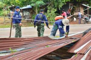 เบื้องต้นนายมนต์สิทธิ์ ไพศาลธนวัฒน์ ผวจ.สกลนคร สั่งการให้ นายวิชาญ แท่นหิน หน.สนง.ปภจ.สกลนคร ได้ลงพื้นที่ให้การช่วยเหลือร่วมกับ น.ส.จิราภรณ์ เบิกบานดี นอภ.วานรนิวาส แล้ว โดยเมื่อวันที่ 17 เม.ย.64 ร่วมกับกำนัน ผู้ใหญ่บ้าน และจิตอาสาภัยพิบัติ เร่งทำการสำรวจความเสียหายและให้ความช่วยเหลือ ซึ่งคาดว่าจะสามารถซ่อมแซมบ้านเรือนผู้ประสบภัยให้กลับคืนสภาพเดิมภายใน 1-2 วันนี้ ในการนี้ นางวารุณี ไพศาลธนวัฒน์ นายกเหล่ากาชาดจังหวัดสกลนคร และคณะกรรมการเหล่ากาชาดจังหวัดสกลนคร นำสิ่งของบรรเทาทุกข์ออกไปเยี่ยมเยียนปลอบขวัญให้กำลังใจแก่ผู้ประสบภัยพร้อมนี้ด้วยแล้ว ขณะที่ พ.อ.ณัฏฐาภูมิ นิกร นทพ.26 สนภ.2 นทพ. นำกำลังพล ในส่วนเวรเตรียมความพร้อม 25 % ตามนโยบาย ผบ.นทพ. ร่วมกับส่วนราชการในพื้นที่ เข้าให้การช่วยเหลือที่ประชาชนผู้ประสบภัย ทำการ ซ่อมแซม และ รื้อถอน บ้านที่ได้รับความเสียหาย ซึ่งมีผู้ได้รับผลกระทบ จำนวน 33 ครัวเรือน ใน บ.โคก ม. 5,12,13 ต.ไร่ อ.พรรณานิคม และ ตำบลบะฮี ตำบลพรรณนานิคมรวม 75 หลัง