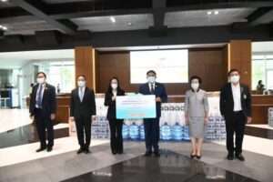 ผู้ว่าราชการกรุงเทพมหานคร รับมอบสิ่งของจากภาคเอกชนเพื่อสนับสนุนการปฎิบัติงานโรงพยาบาลสนาม