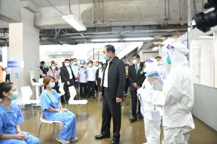 21 เม.ย.64 เวลา 14.00 น. / ณ โรงพยาบาลเอราวัณ 2 (บางกอกอารีนา) เขตหนองจอก พล.ต.อ.อัศวิน ขวัญเมือง ผู้ว่าราชการกรุงเทพมหานคร ให้การต้อนรับ พลเอกประยุทธ์ จันทร์โอชา นายกรัฐมนตรีและคณะ ในโอกาสตรวจเยี่ยมโรงพยาบาลสนามกรุงเทพมหานคร โดยมี นายอนุทิน ชาญวีรกูล รองนายกรัฐมนตรีและรัฐมนตรีว่าการกระทรวงสาธารณสุข นางศิลปสวย ระวีแสงสูรย์ ปลัดกรุงเทพมหานคร แพทย์หญิงวันทนีย์ วัฒนะ รองปลัดกรุงเทพมหานคร ผู้บริหารกรุงเทพมหานคร และผู้ที่เกี่ยวข้อง ร่วมให้การต้อนรับ โอกาสนี้ นายกรัฐมนตรีมอบหมายหน่วยงานที่เกี่ยวข้องบริหารการให้บริการทั้งในส่วนของการเข้าถึงประชาชน สายด่วน รถรับ-ส่งผู้ป่วย การส่งต่อผู้ป่วยและการเชื่อมโยงระหว่างโรงพยาบาลเครือข่าย รวมถึงการบริหารจัดการการฉีดวัคซีนให้แก่ประชาชน
