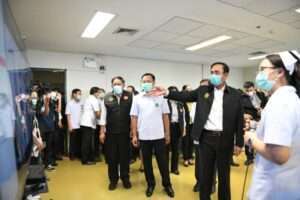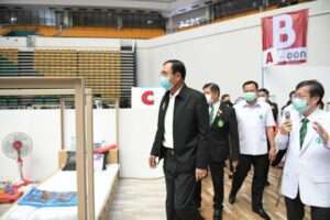 ผู้ว่าฯ อัศวิน ให้การต้อนรับนายกรัฐมนตรี เยี่ยมชมโรงพยาบาลสนามเอราวัณ 2 (บางกอกอารีนา) เขตหนองจอก กทม. ระบุรองรับผู้ติดเชื้อโควิด-19 แต่ไม่มีอาการ หรือโควิดเขียวให้มาดูแลรักษาและติดตามอาการได้ เผยมี 400 เตียง ชาย 180 เตียง หญิง 220 เตียง เว้นระยะห่างระหว่างเตียง 1.5 เมตร