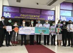 (7 พฤษภาคม 2564) นพ.สมศักดิ์ อรรฆศิลป์ อธิบดีกรมการแพทย์ รับมอบผลิตภัณฑ์อาหารปลอดภัย และครุภัณฑ์ทางการแพทย์ เพื่อสนับสนุนการทำงานของทีมบุคลากรทางการแพทย์ ในโรงพยาบาลสังกัดกรมการแพทย์ จากนายประสิทธิ์ บุญดวงประเสริฐ ประธานคณะผู้บริหาร บริษัท เจริญโภคภัณฑ์อาหาร จำกัด (มหาชน) หรือซีพีเอฟ และนายทัพพ์เทพ จีระอดิศวงศ์ รองกรรมการผู้จัดการ บริษัท ซีพี ออลล์ จำกัด (มหาชน) ซึ่งร่วมกันส่งมอบความช่วยเหลือตามนโยบายเครือเจริญโภคภัณฑ์ภายใต้โครงการ “ซีพี ร้อยเรียงใจ สู้ภัยโควิด-19” เพื่อเป็นส่วนหนึ่งในการสนับสนุนให้ประเทศไทยก้าวผ่านสถานการณ์วิกฤตโควิด-19 ได้โดยเร็ว